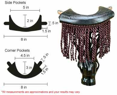 TPPK01 Features: -Table parts and repair pocket set (6) - black shield.-Black leather pockets.-Black shield #6 irons.-For drop pocket tables.You will not be disappointed with